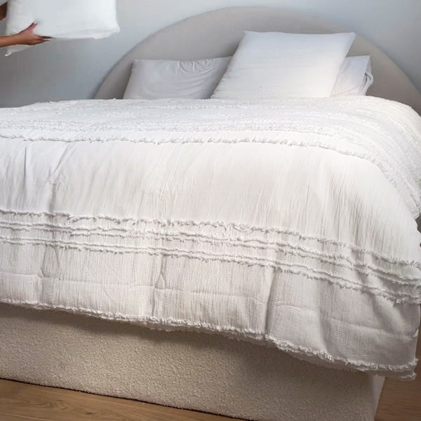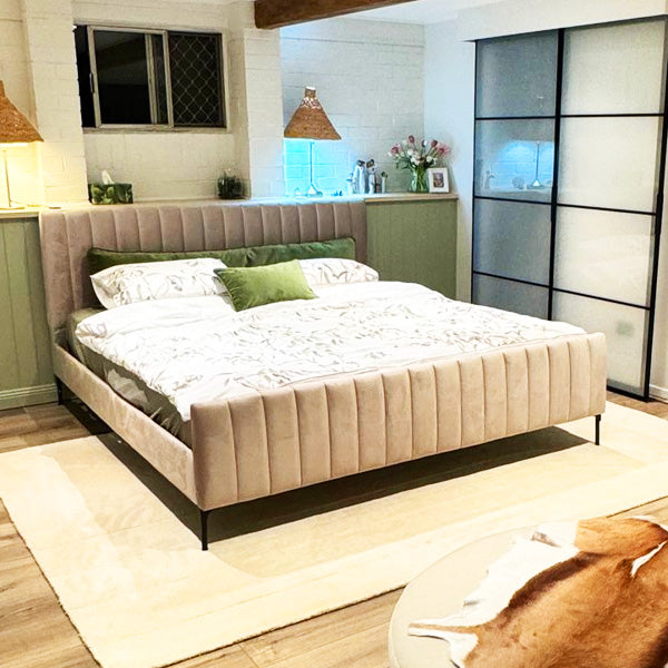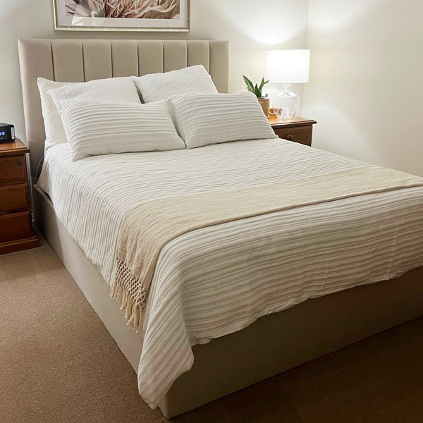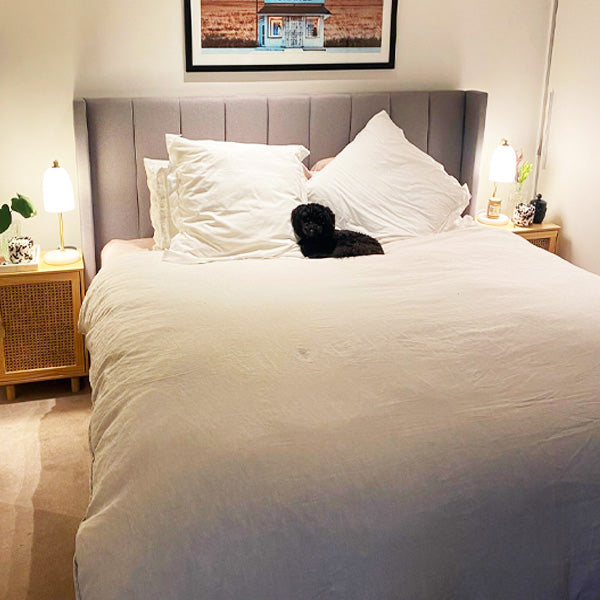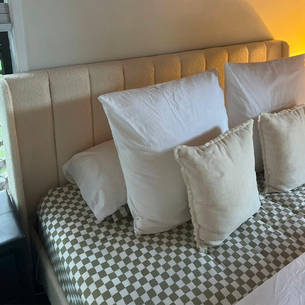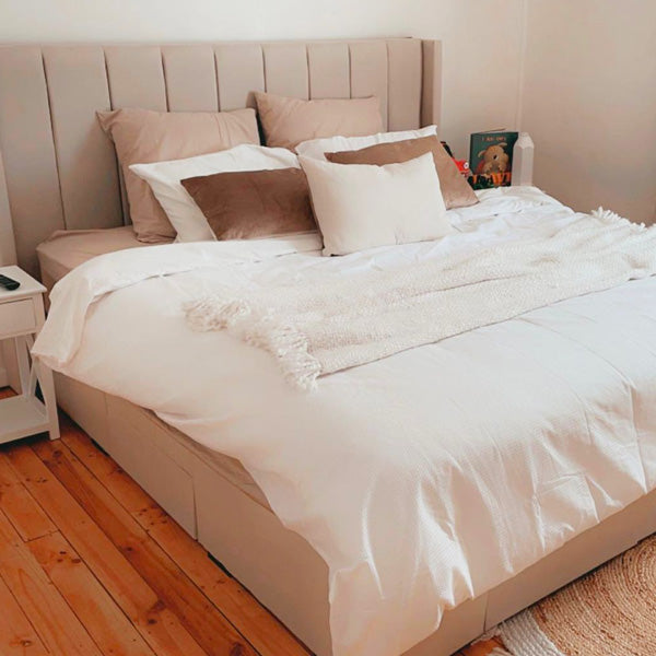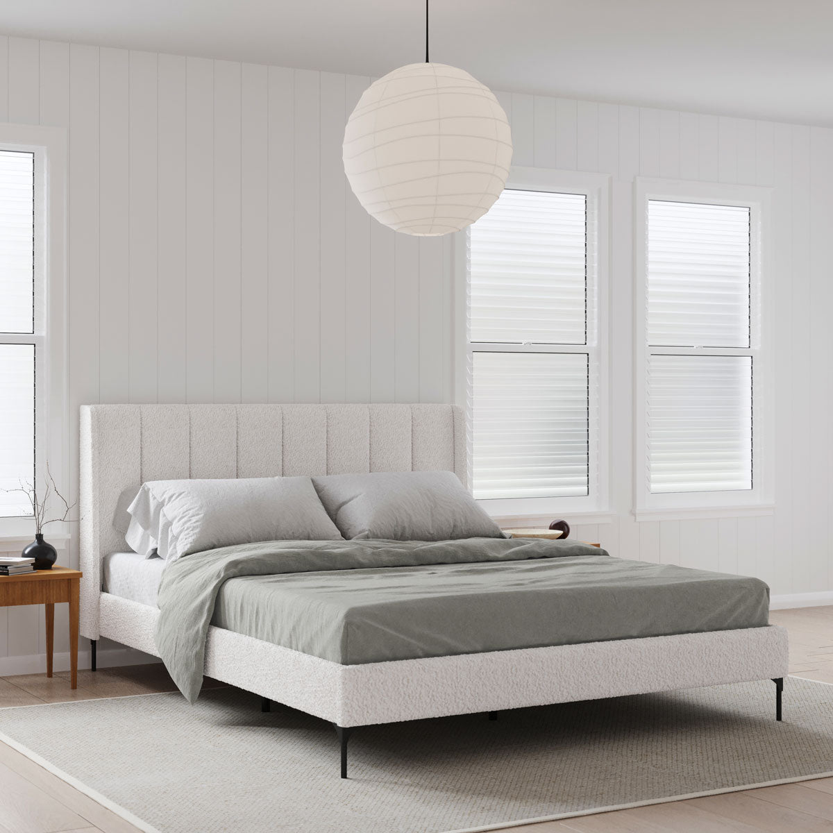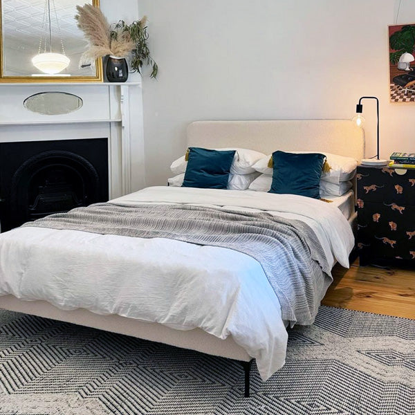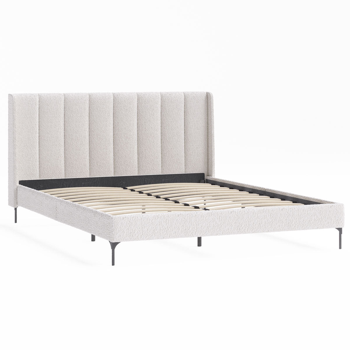 Brooklyn Wing Bed Frame (Ivory White Boucle Fabric)