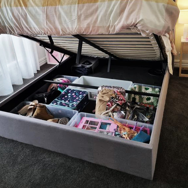 - Durable and stable bed base design with wooden slats, metal beams and support legs