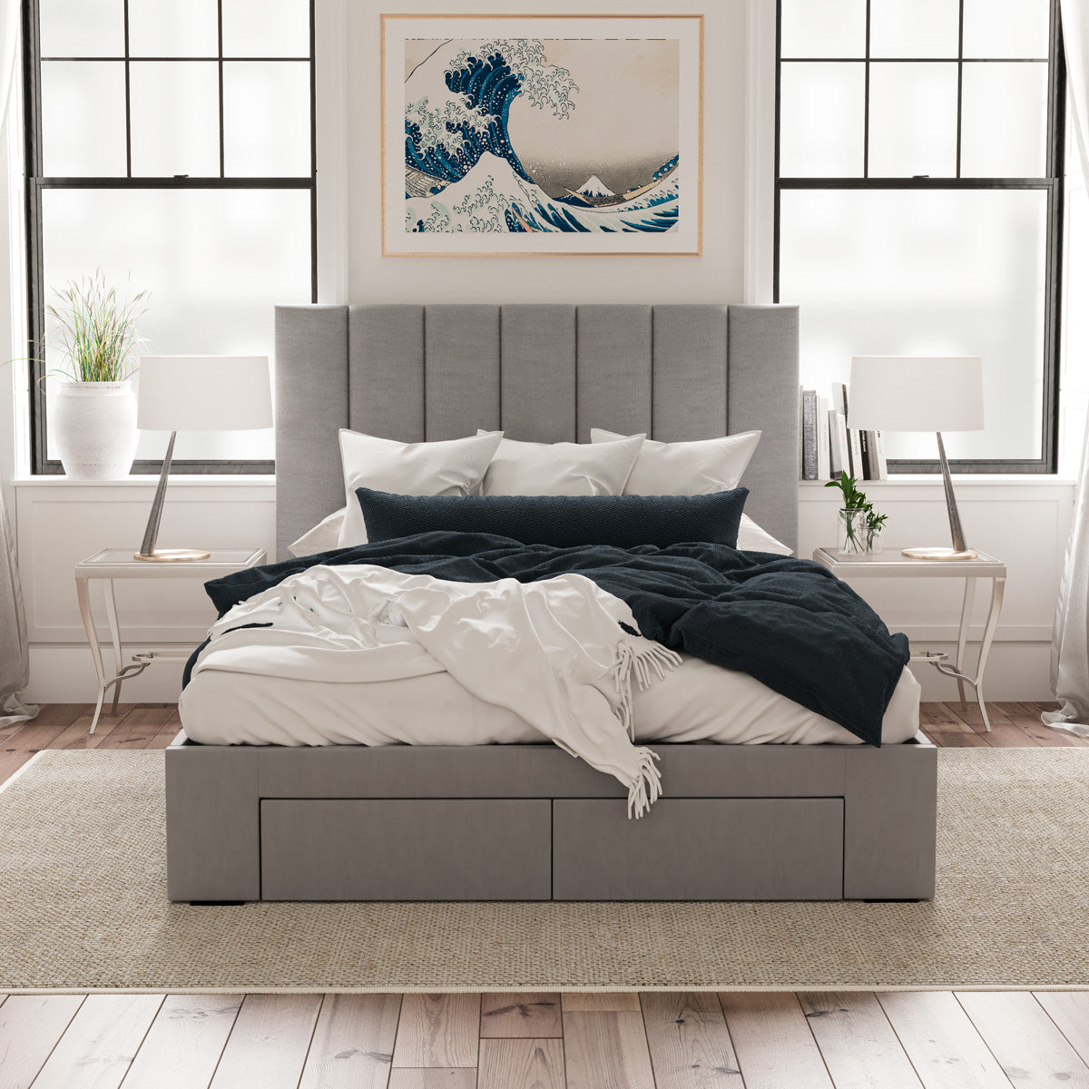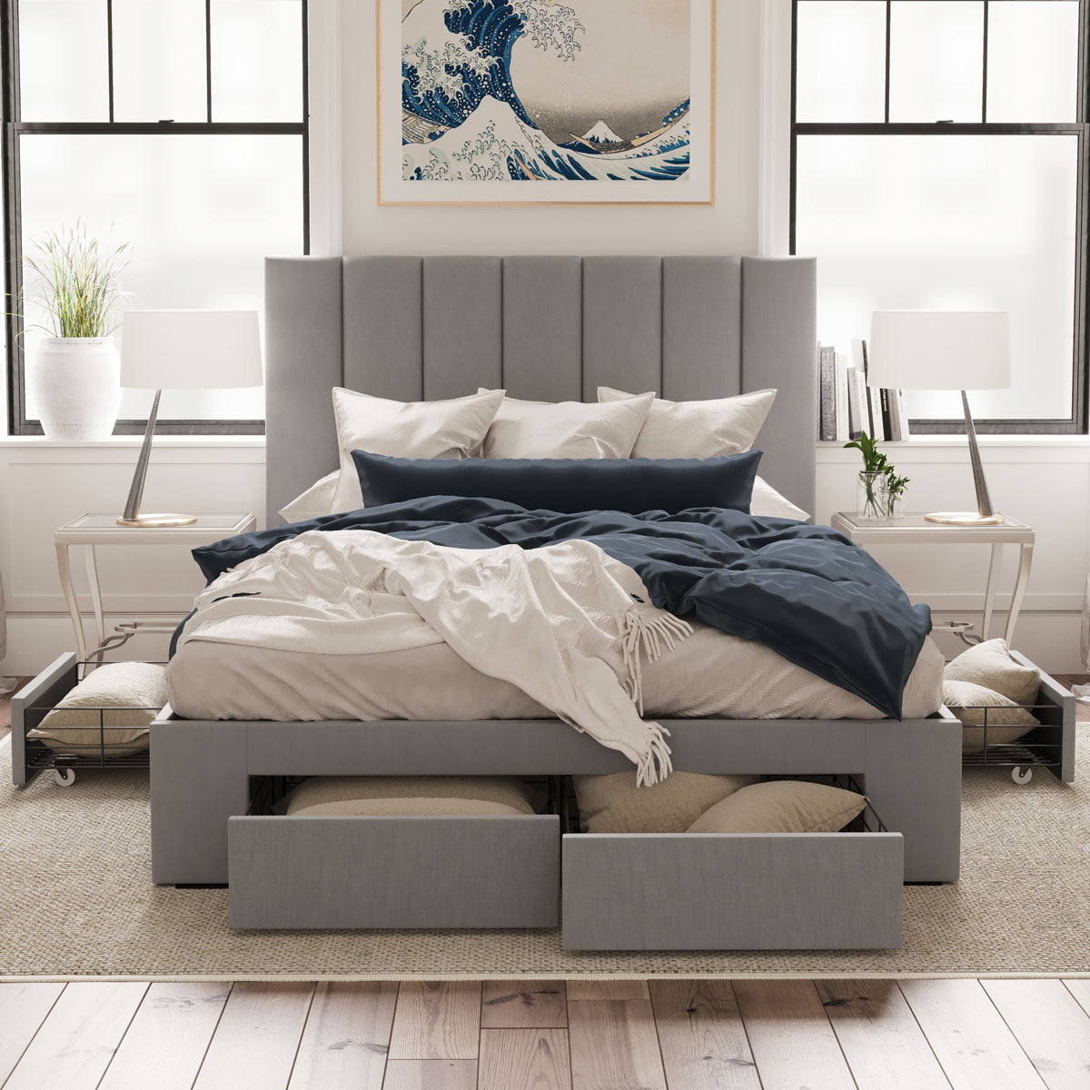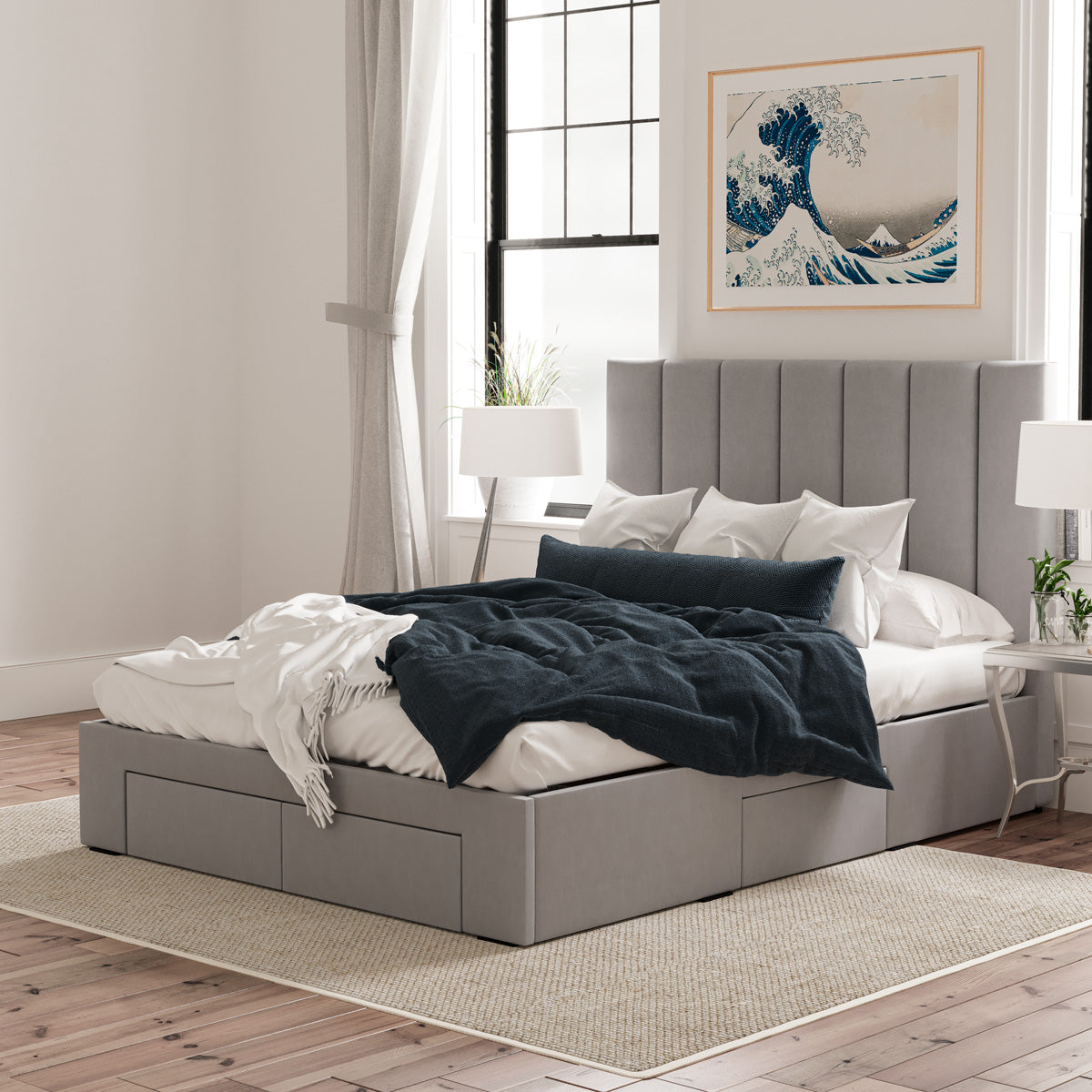 Celine Bed Frame with Four Storage Drawers (Grey Fabric)