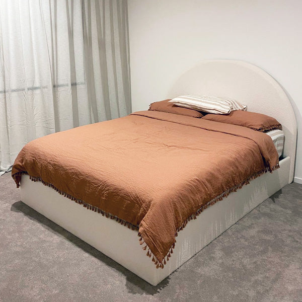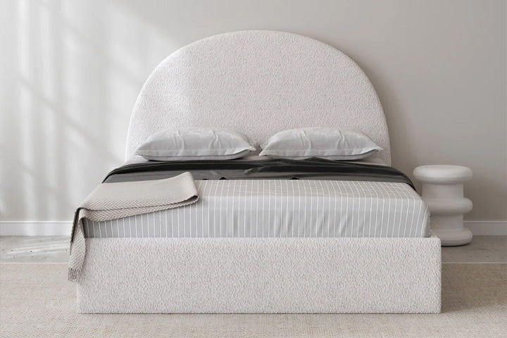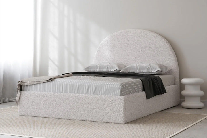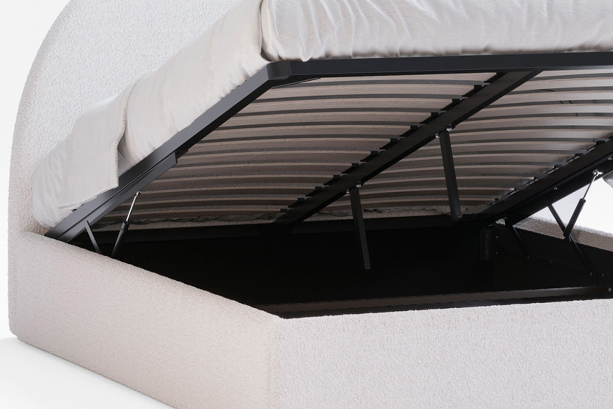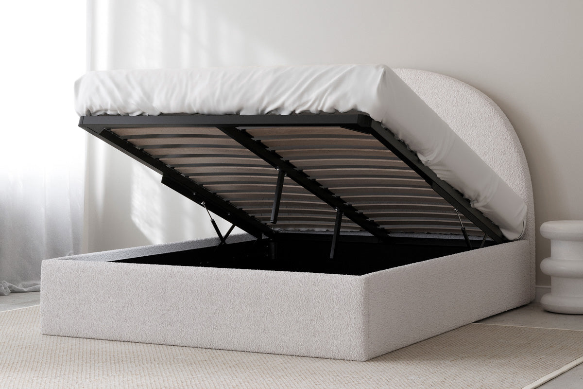 Arch Gas Lift Storage Bed Frame (Ivory White Boucle Fabric)