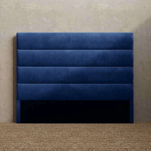 Luxurious Navy Blue Velvet Bed Head with Horizontal Tufting