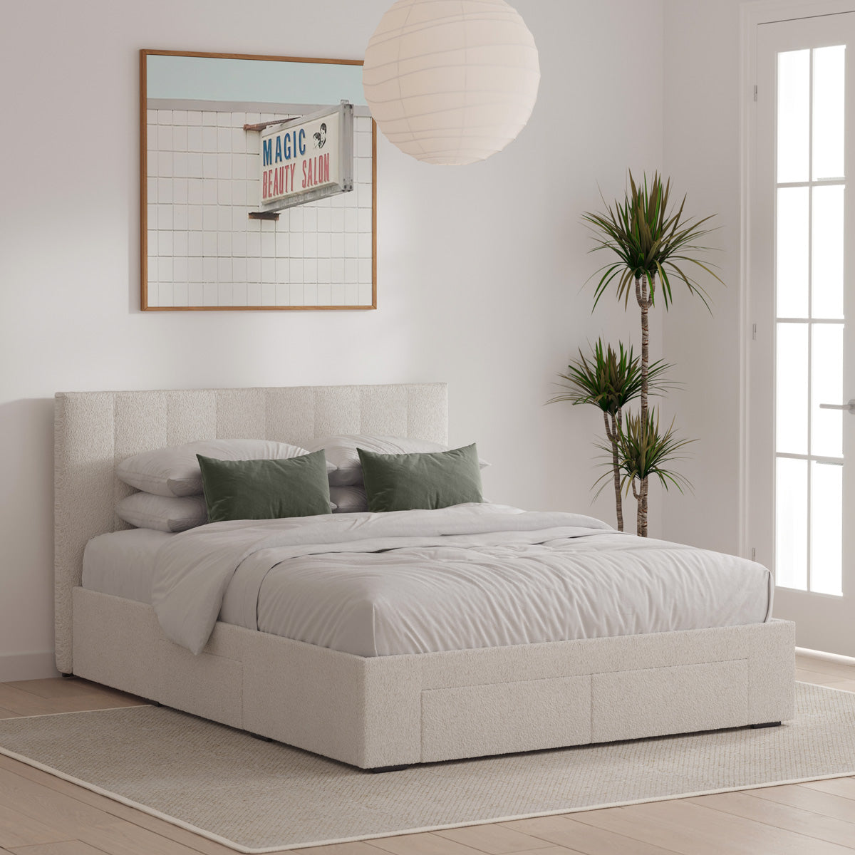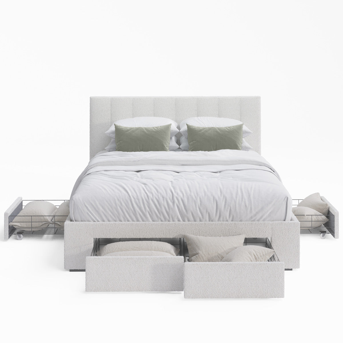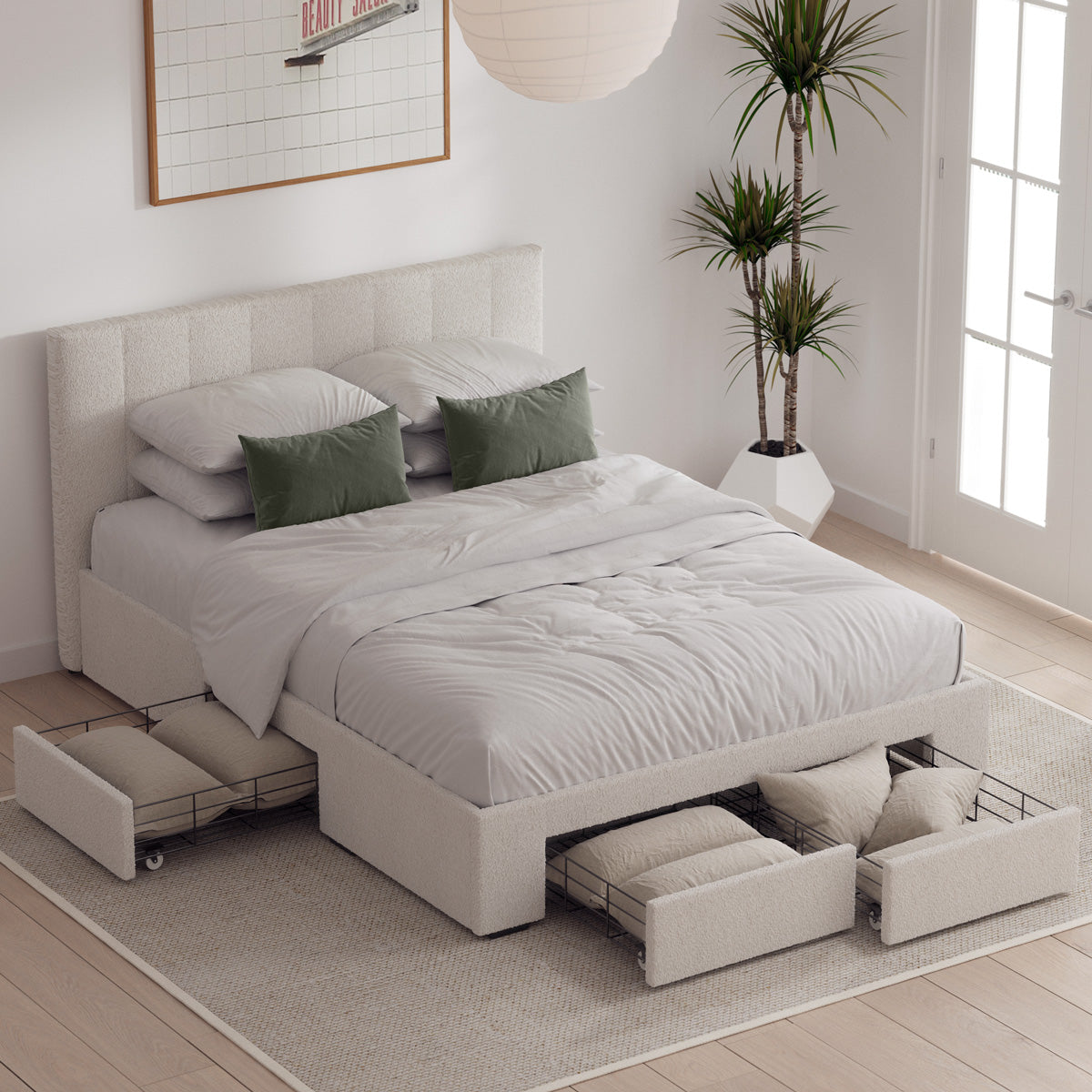 Ormond Storage Bed Frame with Four Extra Large Drawers (Ivory White Boucle Fabric)