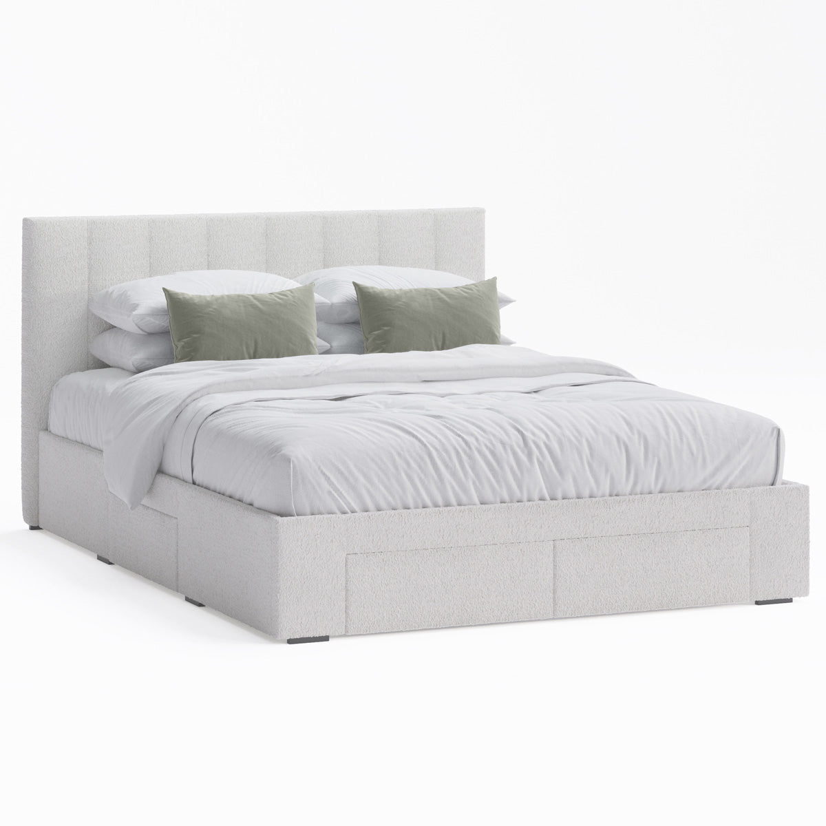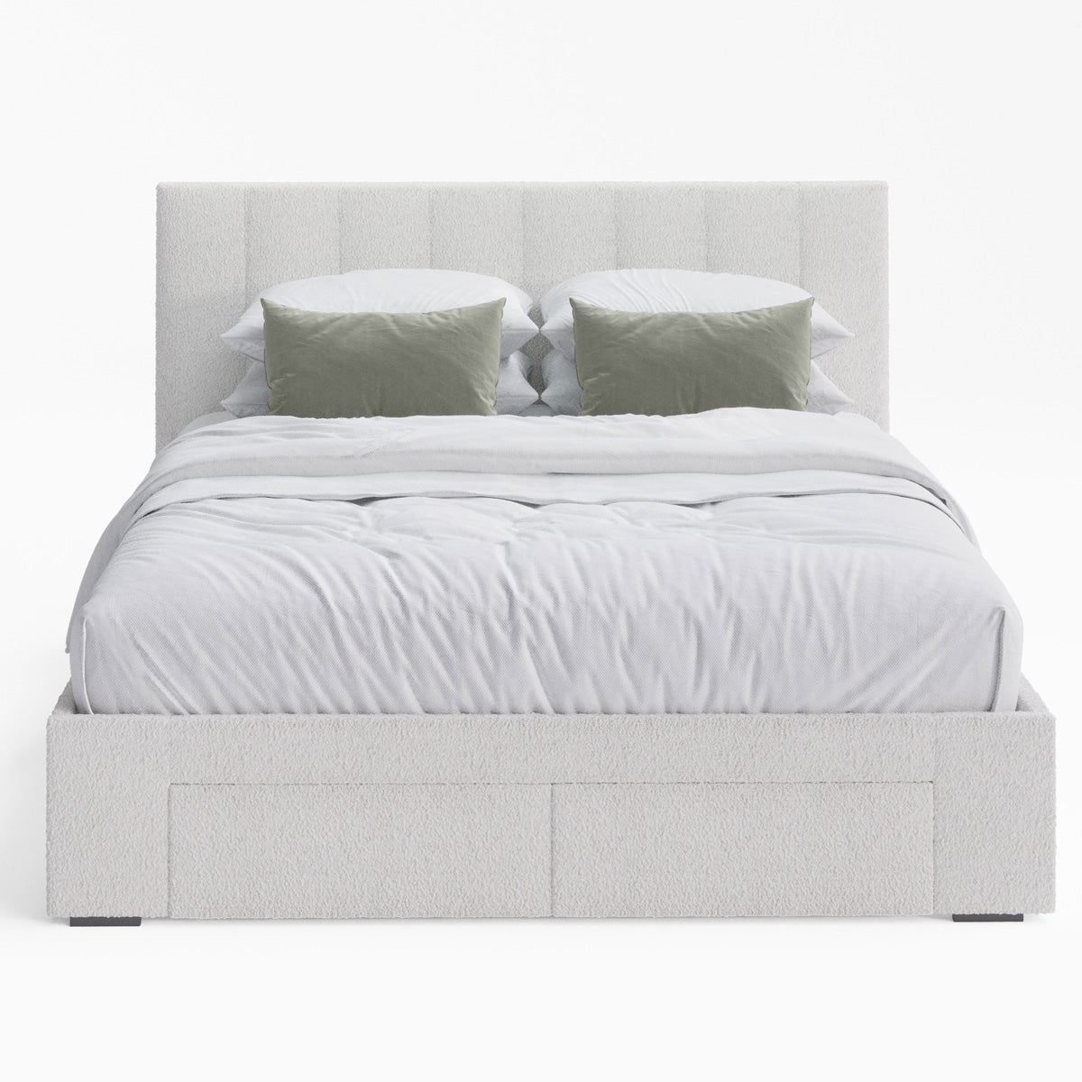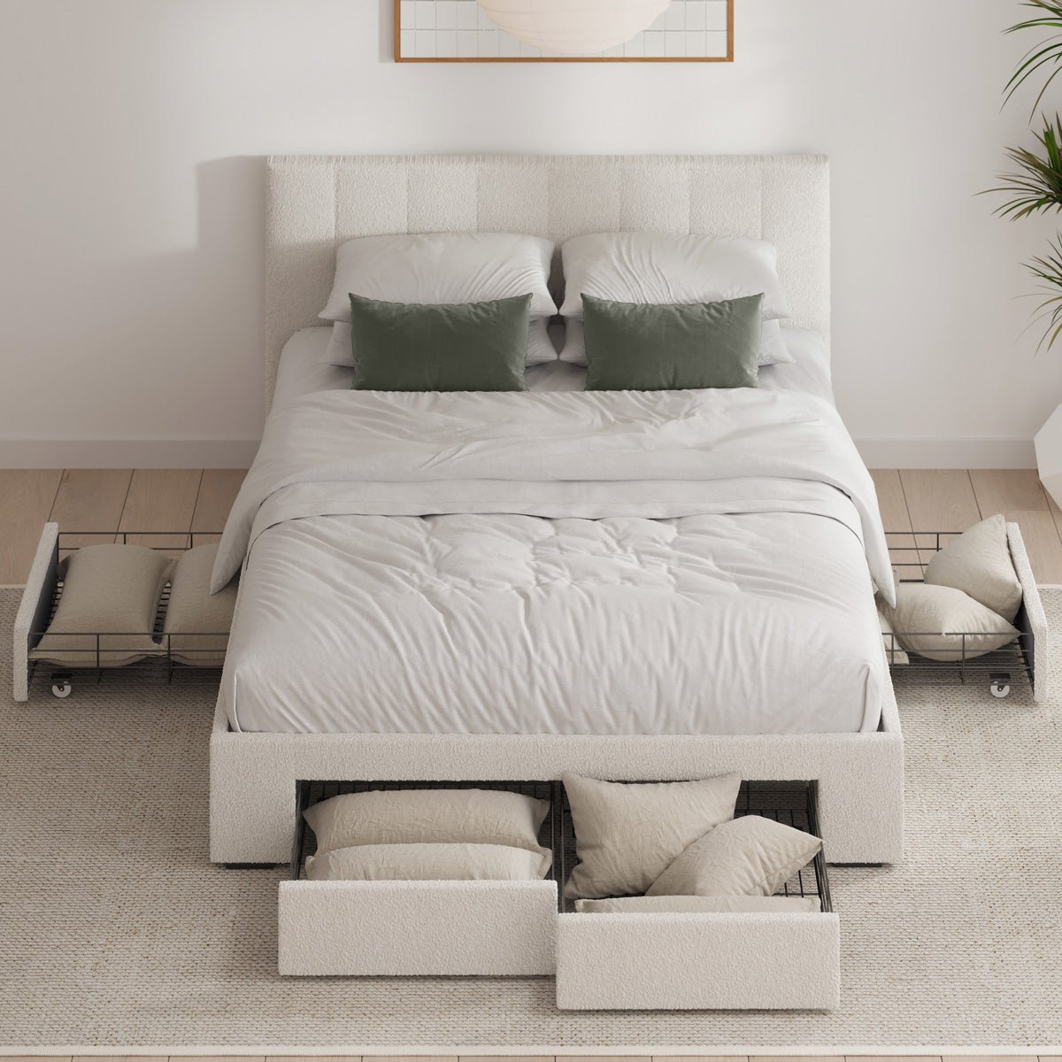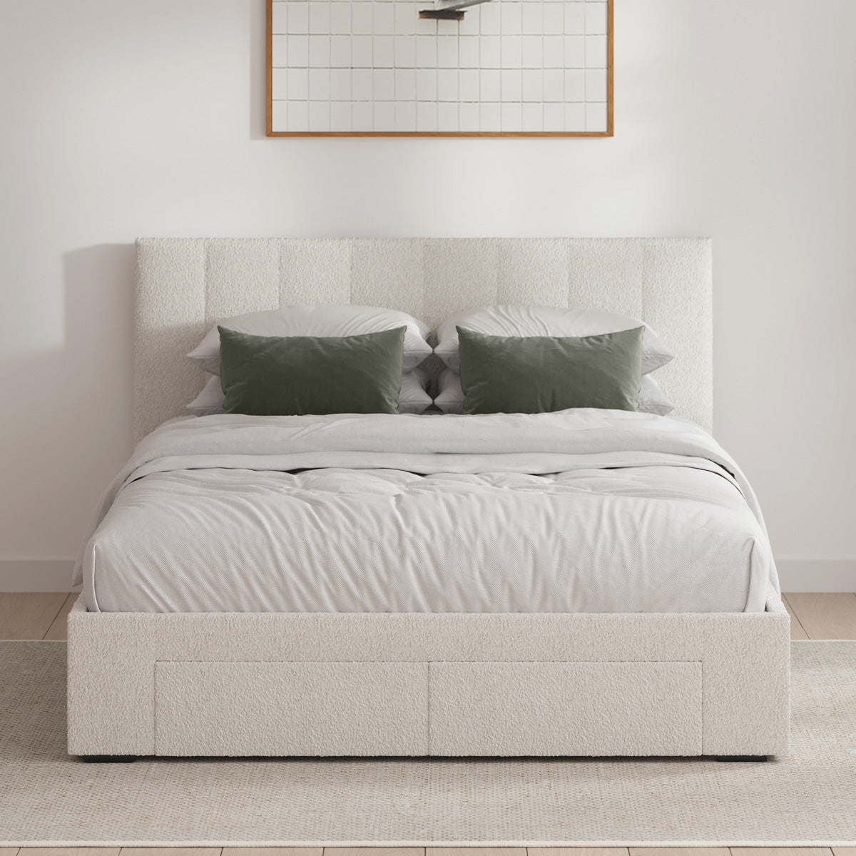 Ormond Storage Bed Frame with Four Extra Large Drawers (Ivory White Boucle Fabric)