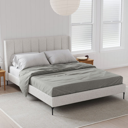 Brooklyn Wing Bed Frame (Ivory White Boucle Fabric)