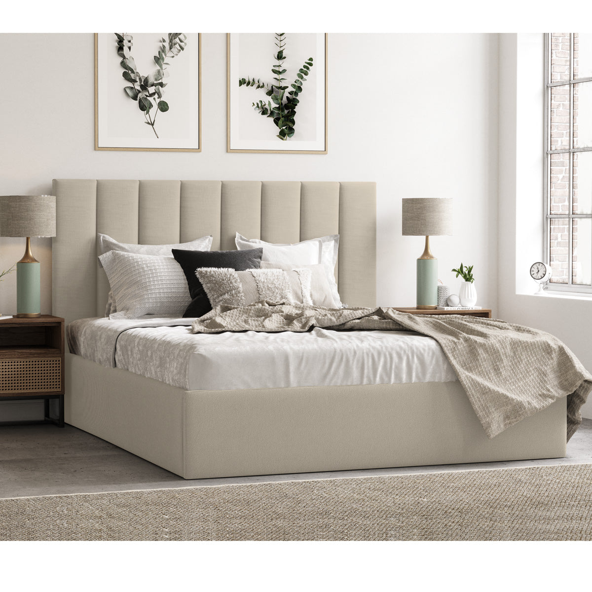 Celine Gas Lift Storage Bed Frame (Natural Beige Fabric)