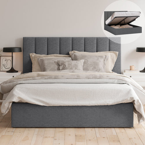 Celine Gas Lift Storage Bed Frame (Charcoal Corduroy Velvet)