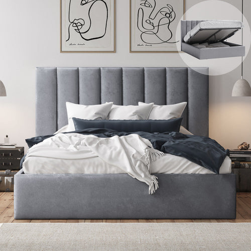 Celine Gas Lift Storage Bed Frame (Fossil Grey Velvet)