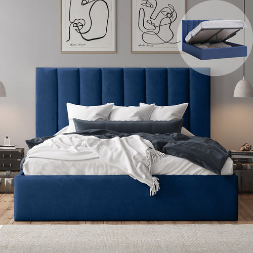 Celine Gas Lift Storage Bed Frame (Navy Blue Velvet)