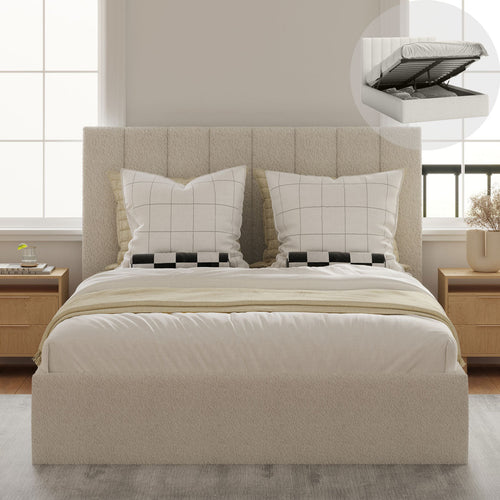 Celine Gas Lift Storage Bed Frame (Ivory White Boucle Fabric)