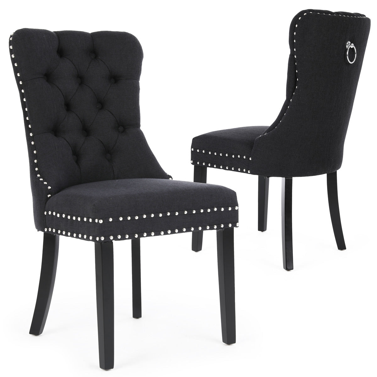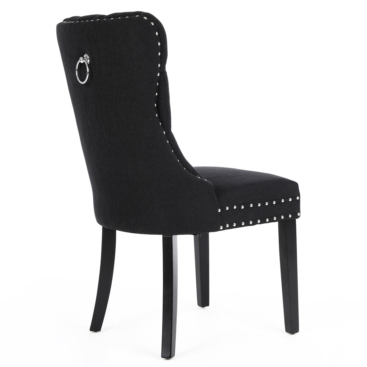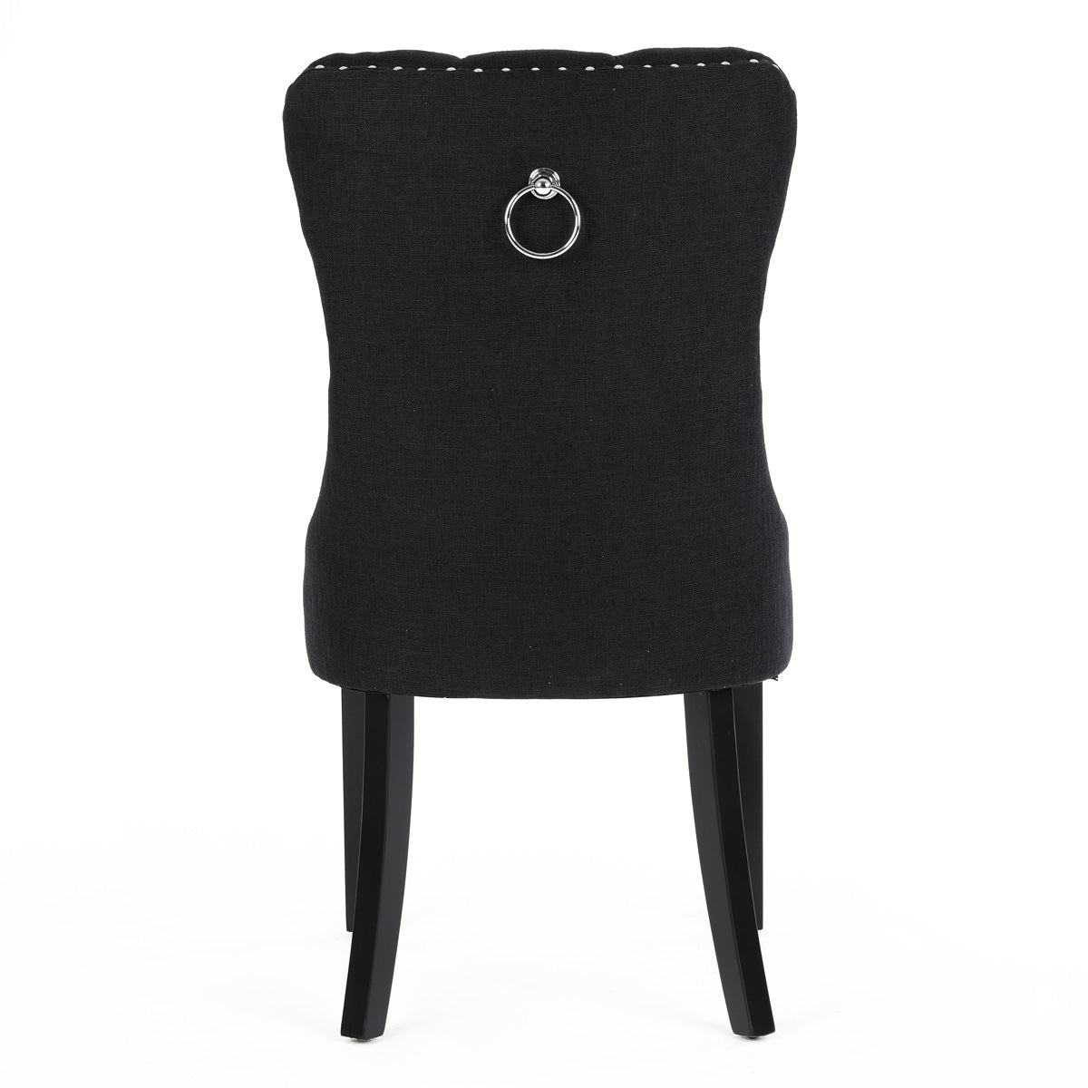 Chanel Scoop Back Dining Chairs with Ring Handle (Set of 2, Black Fabric / Black Legs)