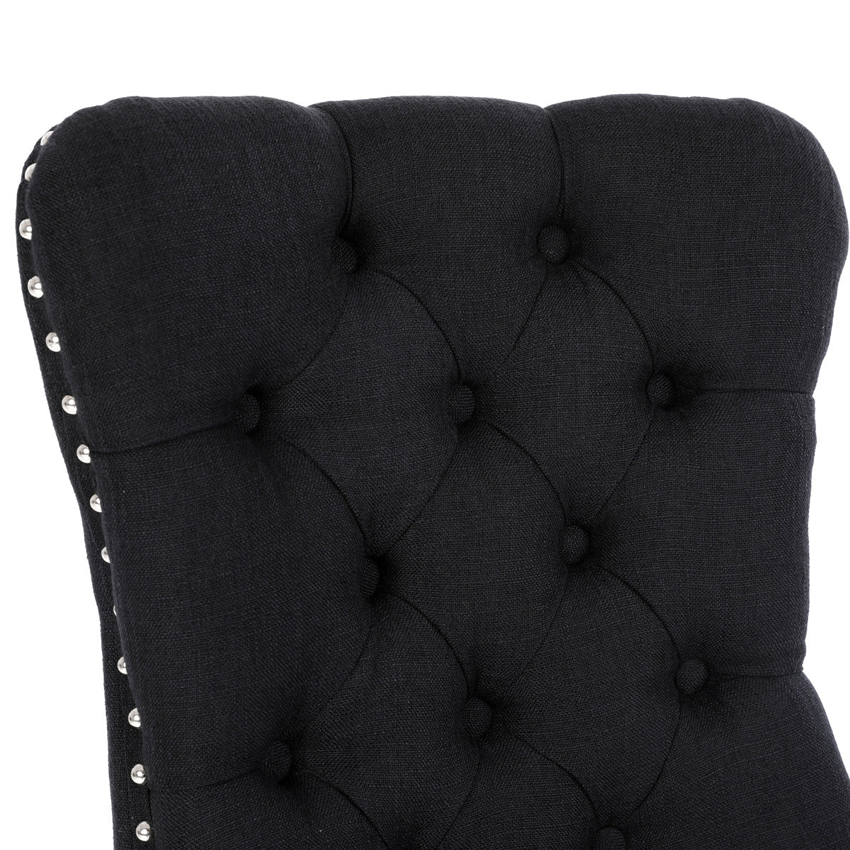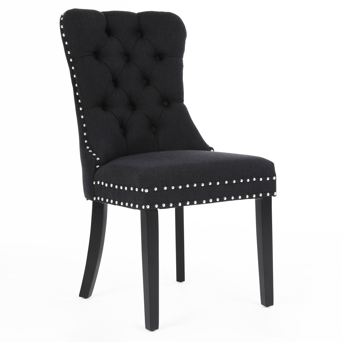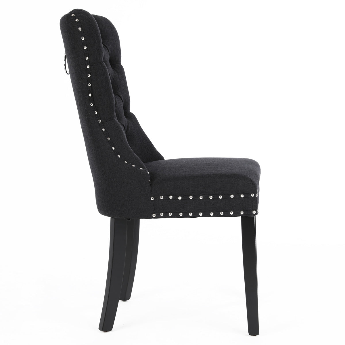 Chanel Scoop Back Dining Chairs with Ring Handle (Set of 2, Black Fabric / Black Legs)