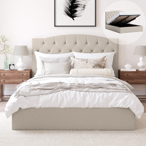 Charlotte Gas Lift Storage Curved Bed Frame (Natural Beige Fabric)