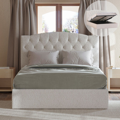 Charlotte Gas Lift Storage Curved Bed Frame (Ivory White Boucle Fabric)
