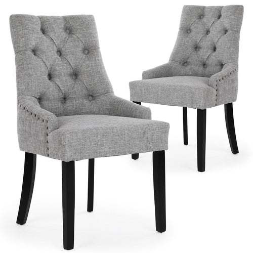 Chloe Scoop Back Dining Chairs (Set of 2, Grey Fabric / Black Legs)