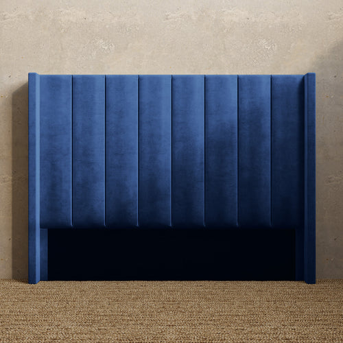 Emilie Upholstered Wing Bedhead Headboard (Navy Blue Velvet Fabric)