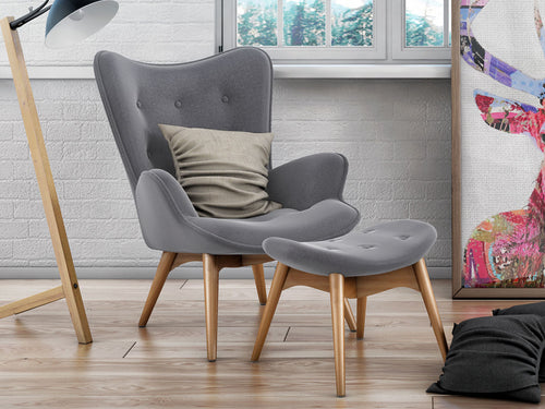 The Grant Featherston Inspired lounge chair with ottoman is the perfect addition to any room. Upholstered in premium fabric, the lounge chair and ottoman set comes in several fabric colour options to suit your individual tastes. Combining modern chic style with fantastic comfort, this chair and ottoman will add that finishing sophisticated touch to your room.
