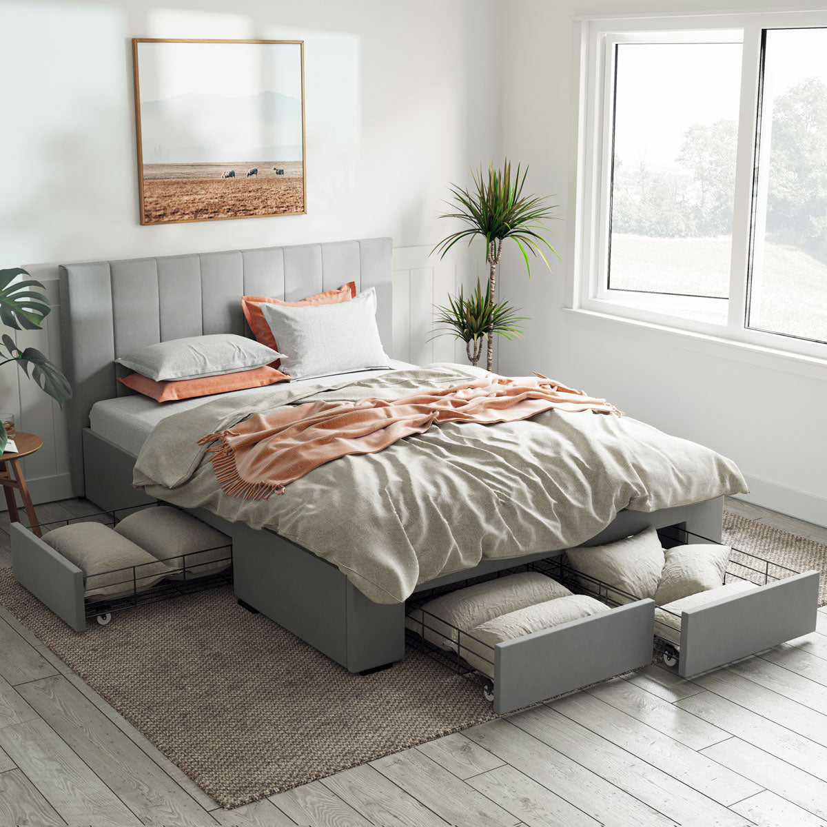 Ormond Storage Bed Frame with Four Extra Large Drawers (Grey Fabric)
