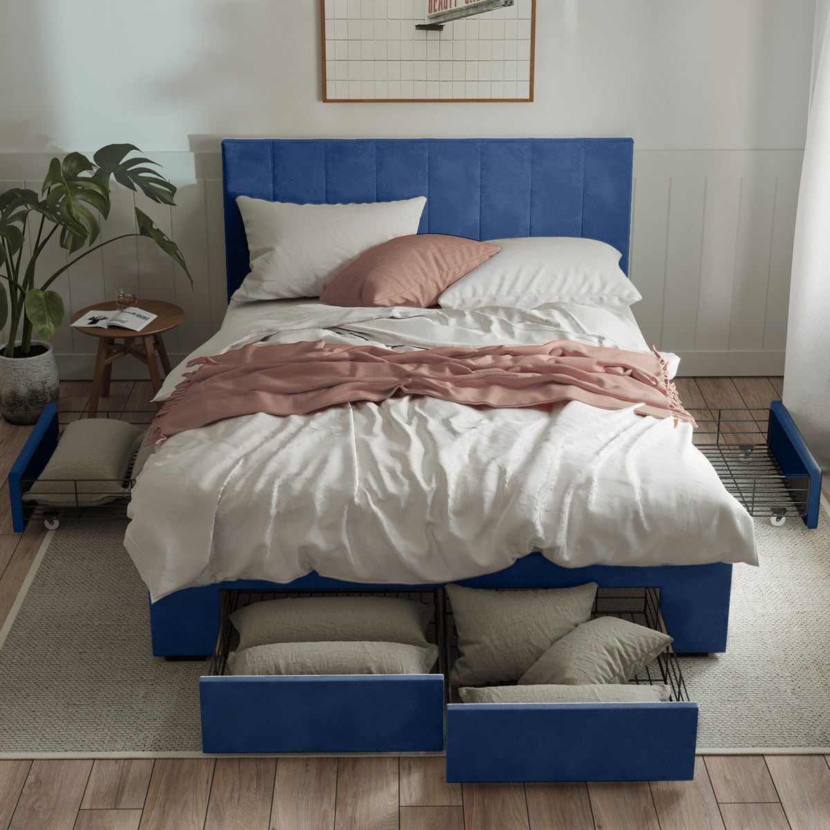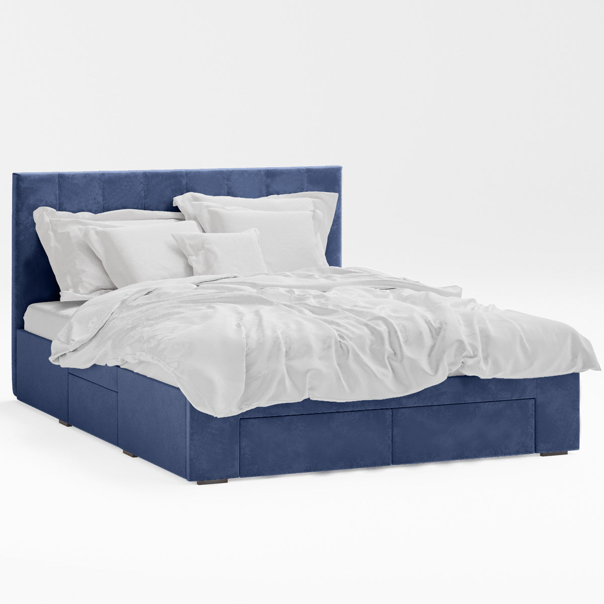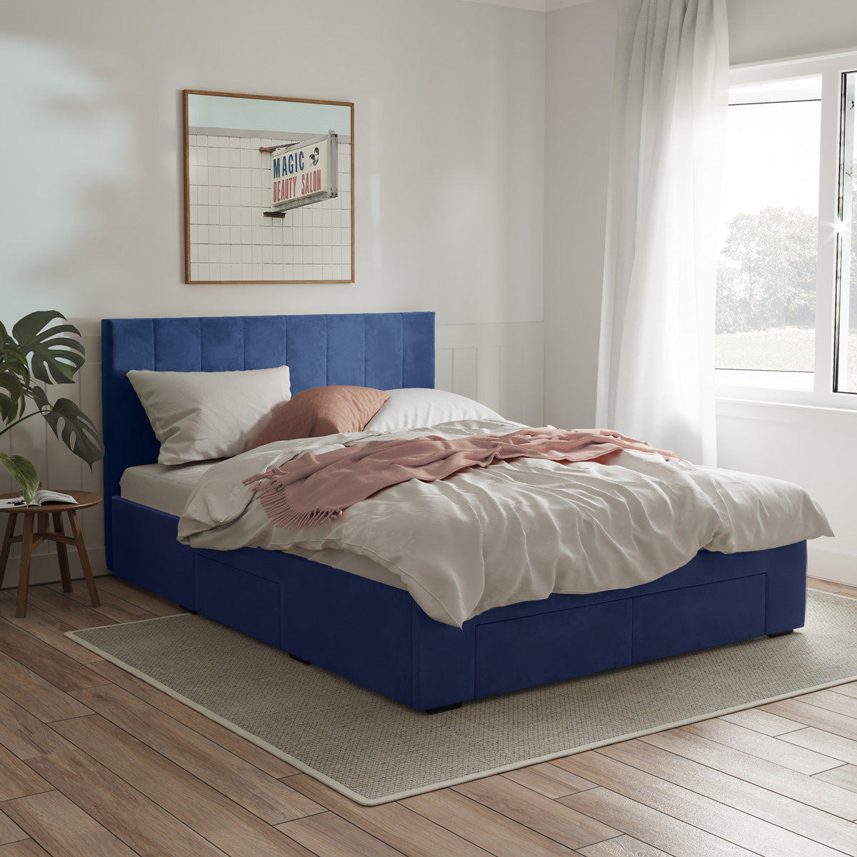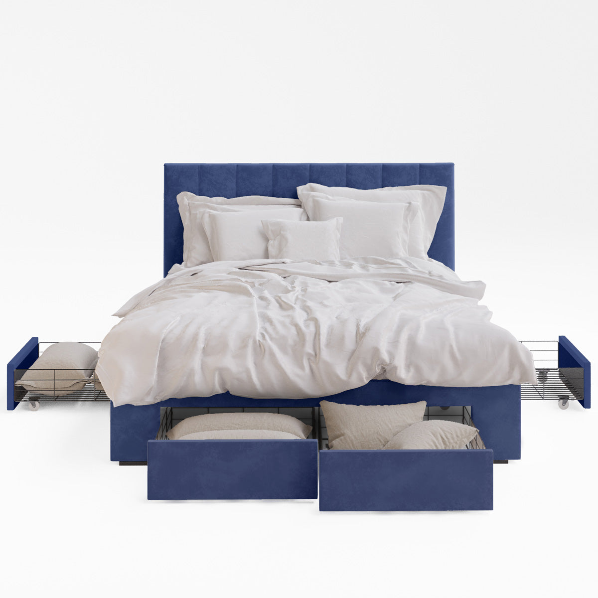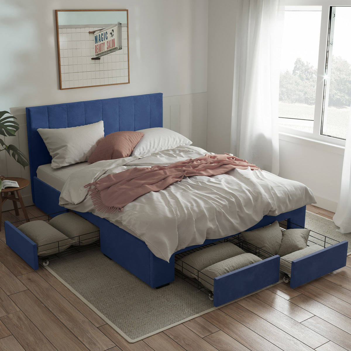 Ormond Bed Frame with Four Extra Large Drawers (Navy Blue Velvet)