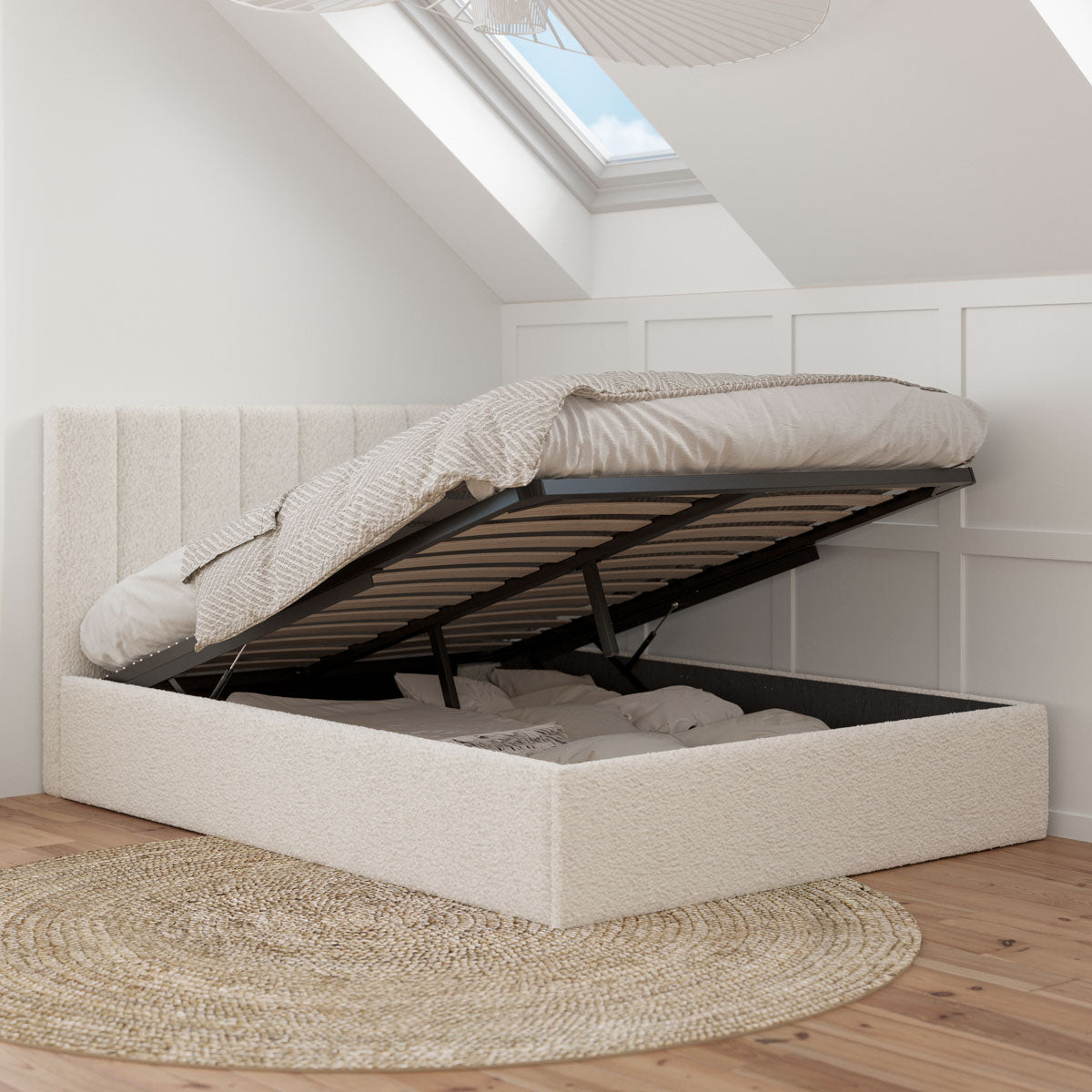 Ormond Gas Lift Storage Bed Frame (Ivory White Boucle Fabric)
