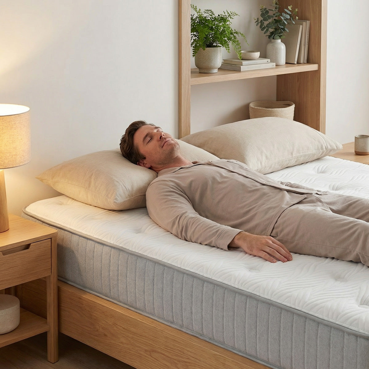Creates an inviting, pressure-easing feel as soon as you lie down, while staying cool and breathable throughout the night. Its moisture-wicking knit helps regulate temperature and maintain freshness, while the lightly cushioned quilting adds surface comfort and stability without feeling overly plush — perfect for balanced, everyday sleep.
