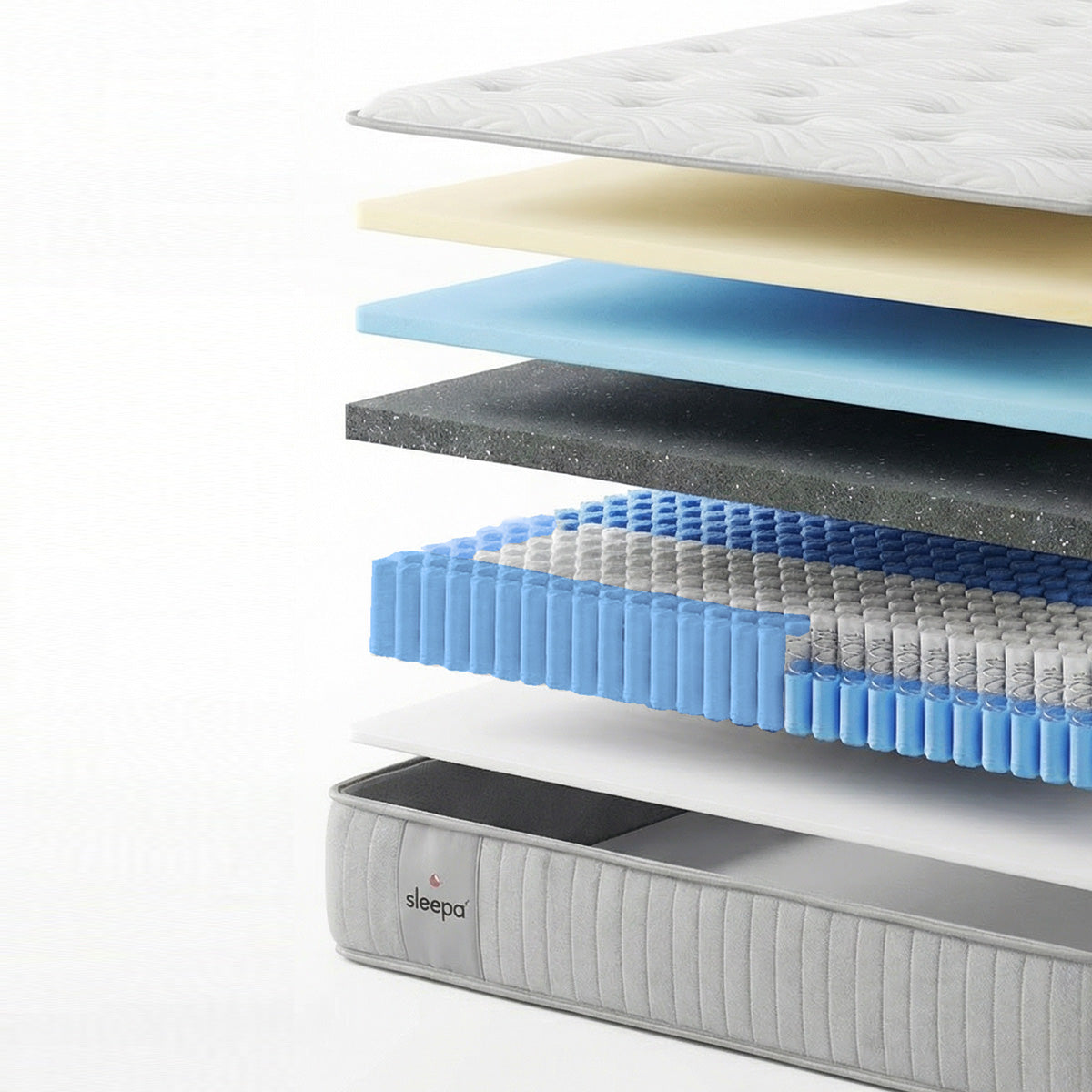 A softly cushioned surface welcomes you in, while the supportive pocket spring system beneath provides steady, responsive support all night long. Thoughtfully designed to feel comfortable without being overly plush, the Sleepa Essential Hybrid Mattress delivers a balanced sleep experience that’s ideal for everyday use and effortless rest.