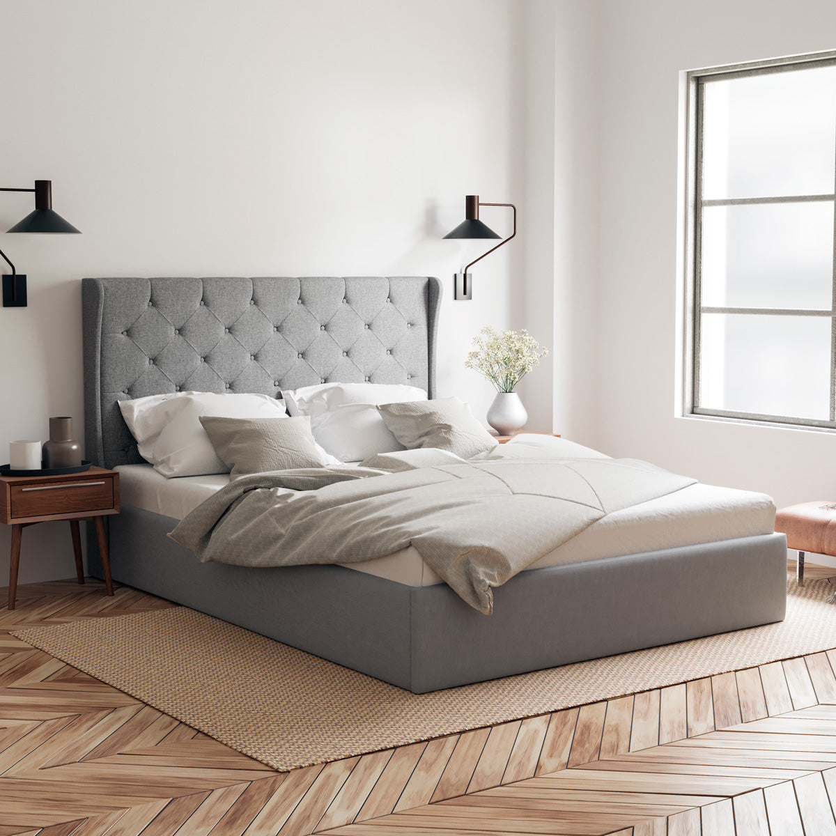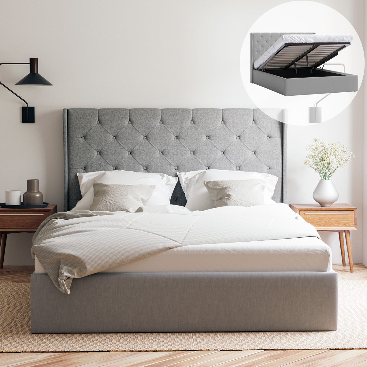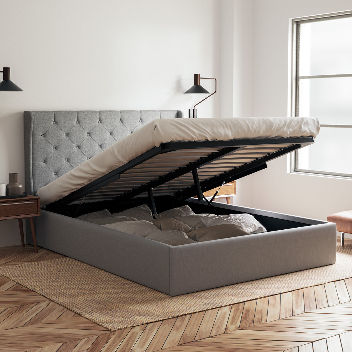 Stella Gas Lift Storage Wing Bed Frame (Grey Fabric)