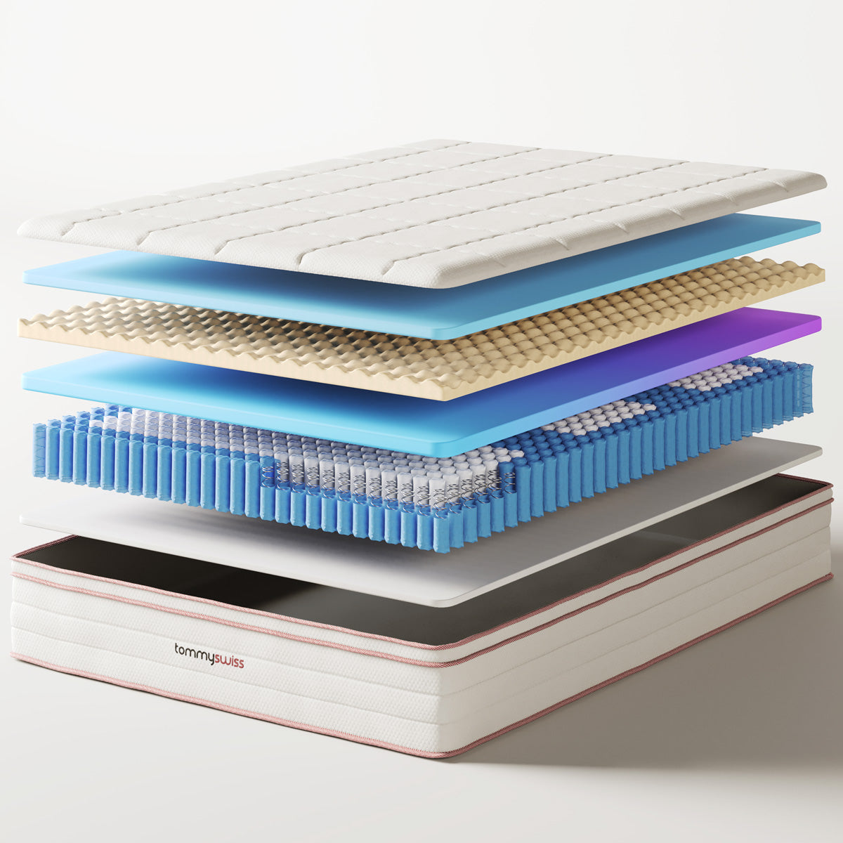 - 7 Zoned Pocket Spring technology with triple tempered 7-Turn Coil